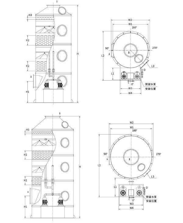 Toranj za prskanje od nehrđajućeg čelika 304 uređaj je za pročišćavanje ispušnih plinova izrađen od nehrđajućeg čelika 304. Njegov princip rada temelji se na kontaktnoj reakciji plin-tekućina. Zbog svojstava materijala nudi određene prednosti u pogledu uporabljivosti i roka. Detalji su sljedeći: